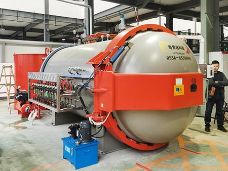 產(chǎn)品名稱 復(fù)合材料熱壓罐 生產(chǎn)廠家 山東鑫泰鑫智能裝備有限公司 工作溫度 +20~300℃ 控制溫度 ±1.0℃ 升溫速度 3.5℃/MIN 降溫速度 3.5℃/MIN 工作壓力 P=10.1~4.0MPa 升壓速度 0.1MPa/MIN 降壓速度 0.2MPa/MIN 真空度 H=1.5~2.5KPA(絕對壓力) 復(fù)合材料熱壓罐具有以下主要功能: